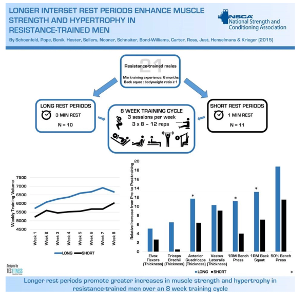 Rest 3 minutes for compound lifts (Squat/Bench). Rest 2 minutes for isolation (Bicep).
